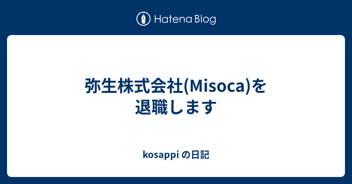 kosappi の日記 弥生株式会社(Misoca)を退職します